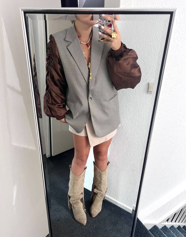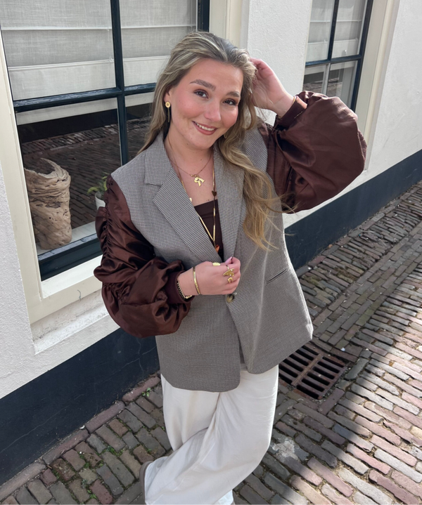 Deze geruite blazer met glanzende bombermouwen van Ambika is fan tas tisch en uniek! Met de chique en sprankelende details is onze maven bomber blazer de ideale keuze voor wie houdt van tijdloze klasse met een moderne twist. Het jasje is dubbel gevoerd en van kwalitatief dik materiaal en dus ook perfect te dragen als tussenjas.