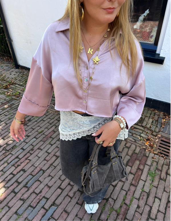 Deze shiny, satijnlook cropped blouse is dé perfecte mix van classy en speels. Afgewerkt met schattige schelpkleur knoopjes en eindeloos te stylen, van casual chic tot party ready. Verkrijgbaar in drie dreamy kleuren: wit, groen en oudroze. Welke kies jij?