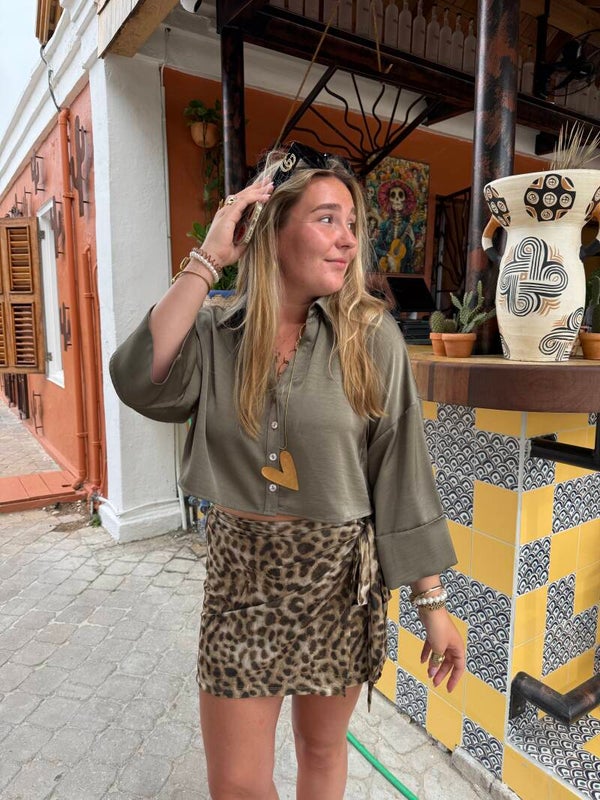 Deze shiny, satijnlook cropped blouse is dé perfecte mix van classy en speels. Afgewerkt met schattige schelpkleur knoopjes en eindeloos te stylen, van casual chic tot party ready. Verkrijgbaar in drie dreamy kleuren: wit, groen en oudroze. Welke kies jij?