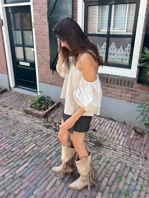 De belle noë top is een one shoulder blouse van katoen, ontworpen voor stijl én comfort. Dankzij de stretch blijft hij perfect zitten rond de borst en arm, terwijl de rest losjes en luchtig valt voor een speelse, effortless look.