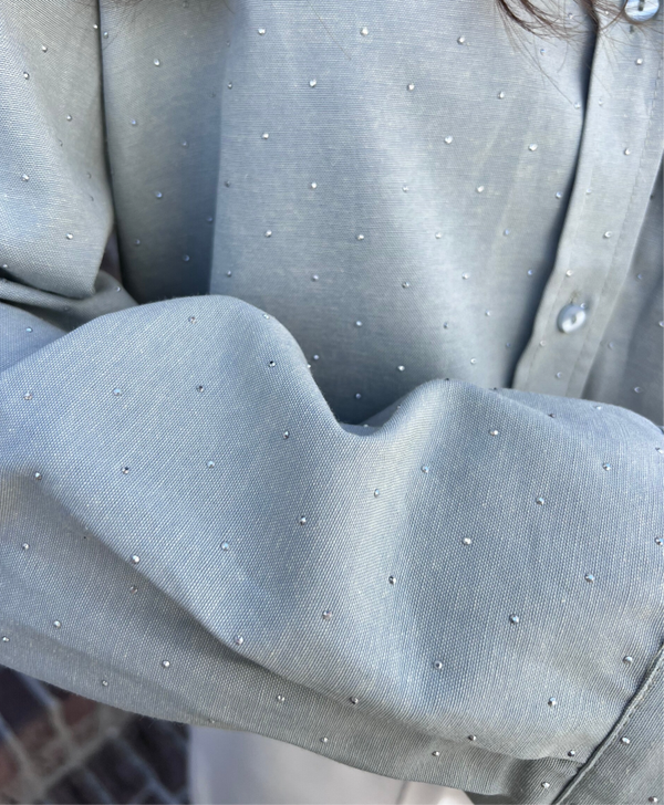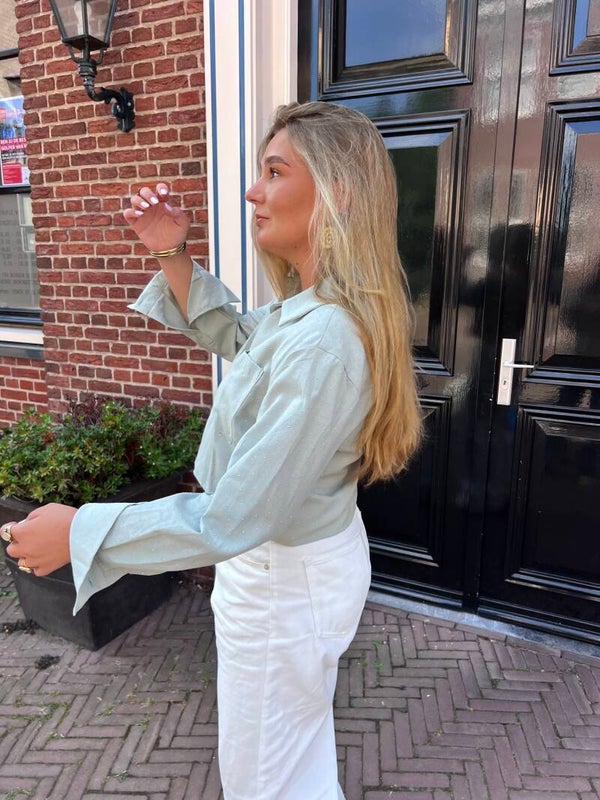 De donna strass blouse is een luchtig cropped blouseje met prachtige subtiele strass detail steentjes!
