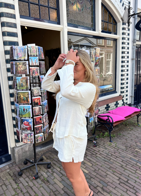 De raya sol set is jouw nieuwe go-to voor zonnige dagen! Gemaakt van 100% zacht katoen, perfect als comfy loungewear voor het weekend of als beach-ready basic. Te dragen met maat S t/m L.