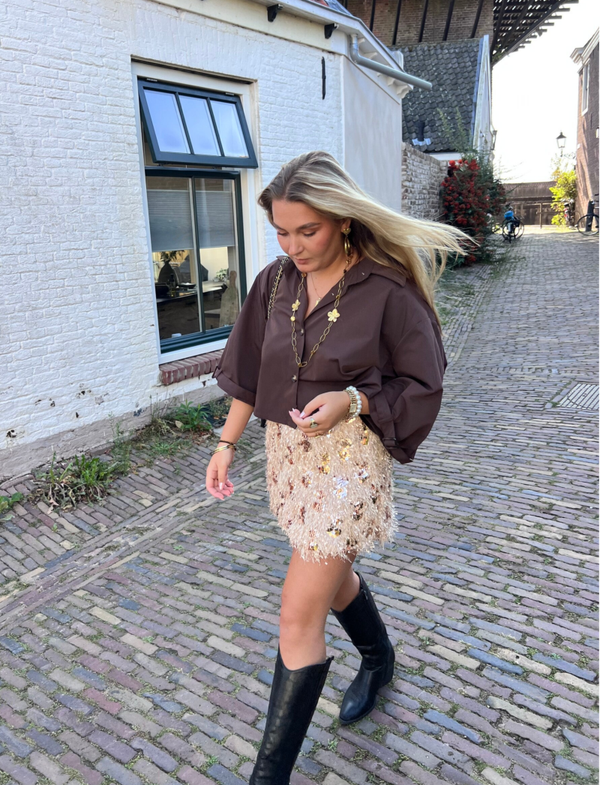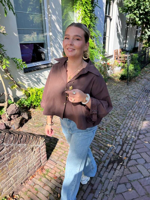 Het korte model trenchcoat met cape-effect geeft een moderne look, terwijl de bruine knopen en stijlvolle gespjes bij de mouwen zorgen voor verfijnde details. One size en eindeloos te stylen, een echte statement piece voor iedere garderobe.