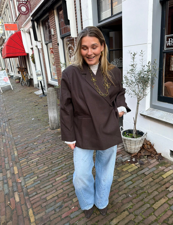 De boxy oversized blazer is een echte statement piece waarmee je elke outfit moeiteloos afstylet. De blazer heeft een boxy, oversized fit en is one size.
